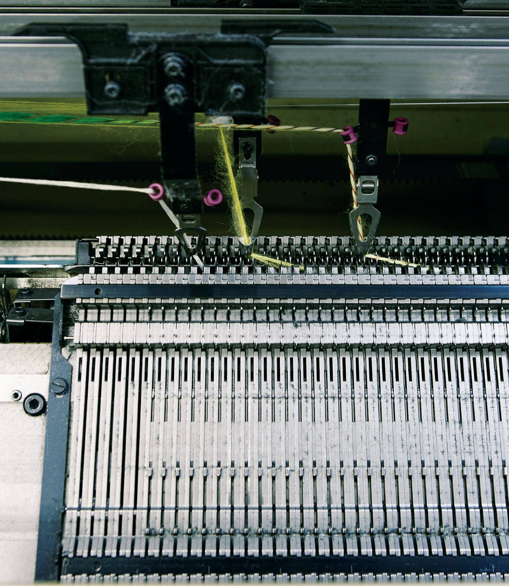 ハイゲージになるとリンキングでループの細密な一目一目を指すことはなかなか手強く、他方ローゲージでは編目が大きく成型するのはほとほと困難な作業に。社内/外部の協力工場を含め若手の育成に注力しながら、数値化できないノウハウの蓄積を共有し、一般的には手をこまねくような煩雑な工程に独自に取り組んでいる。